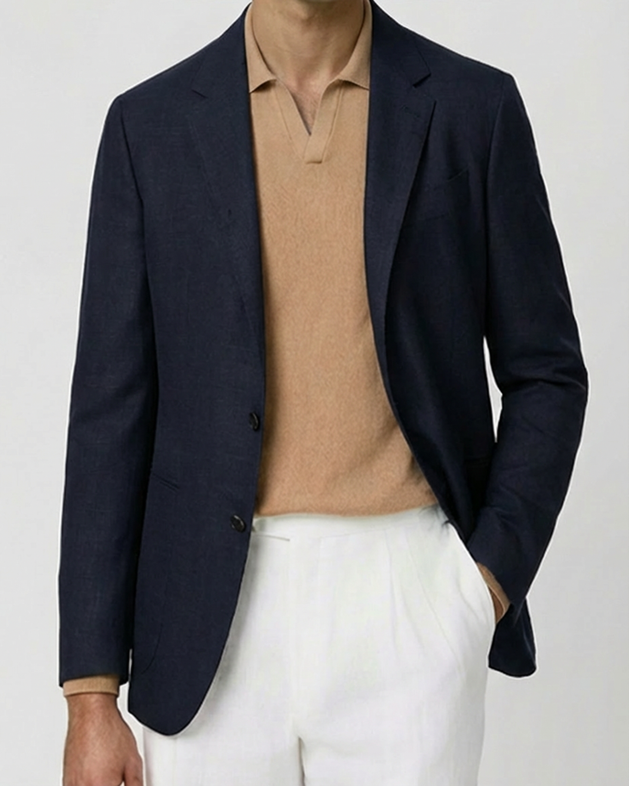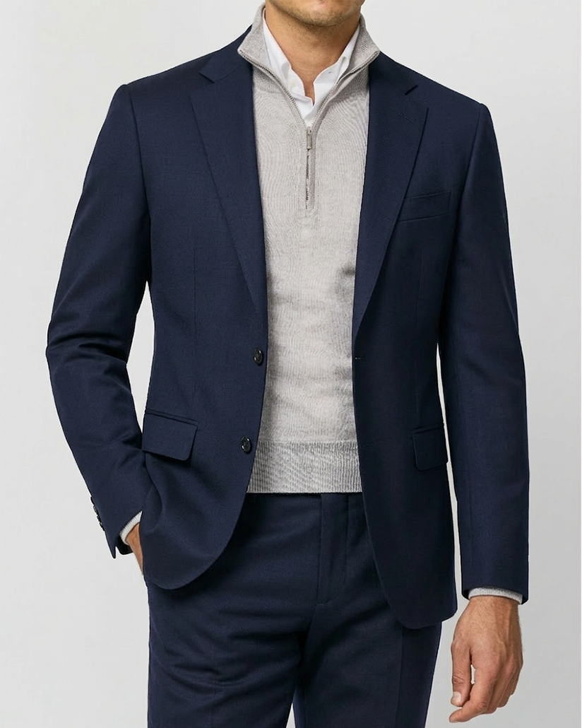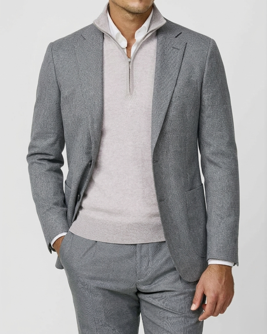 In fine merino or cashmere, it reframes the sport coat into something quieter, more deliberate.